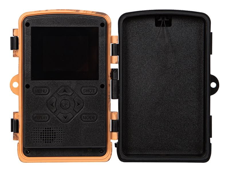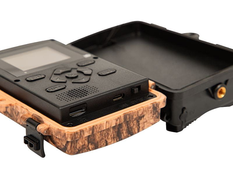 Fotoaparat je vodotesen do stopnje zaščite IP 66, zato ga lahko pustite v gozdu, ne da bi se ozirali na vremenske razmere. To pomeni, da je naprava popolnoma zaščitena pred prahom in močnimi curki vode, kar zagotavlja, da dež, sneg ali prah ne vplivajo na njeno delovanje. Zaradi tega lahko foto past deluje vse leto, tudi v najzahtevnejših okoljih.