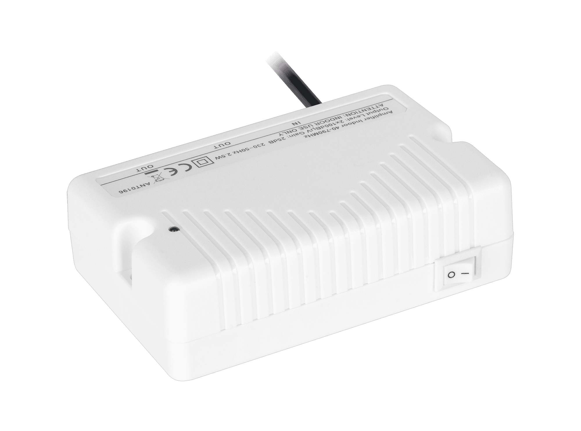 Za notranjo uporabo 2× 20dB 220/240 VAC 50Hz 3W Frekvenca: 5–1000 MHz Ojačanje: 0 – 20 dBImpedance: 75 Ohm Izhodna raven Max: 96dB uV Priključki: IEC