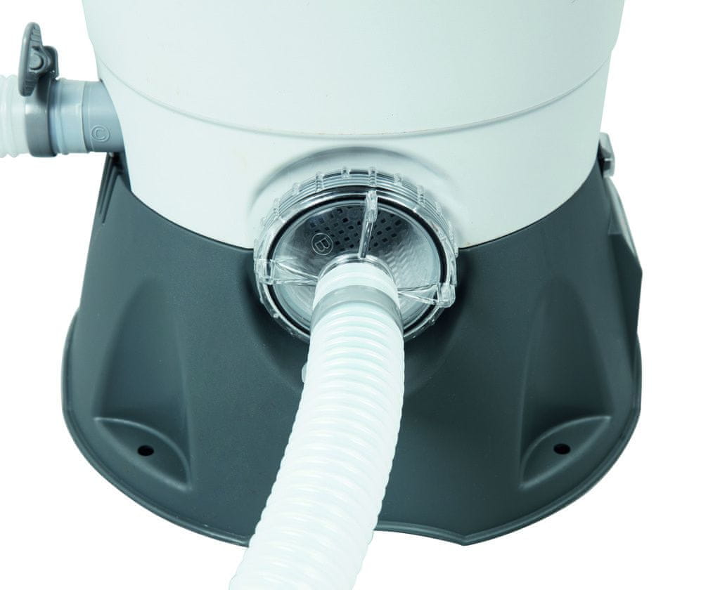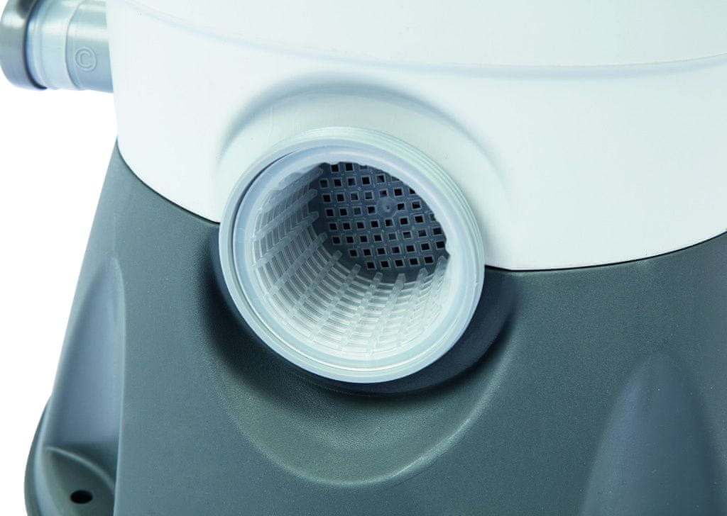 Peščena filtrirna naprava podjetja Bestway je sestavljena iz plastičnega podstavka, polipropilenske filtrirne posode z zgornjim 6-smernim ventilom, manometra in črpalke s predfiltrom za grobe nečistoče.