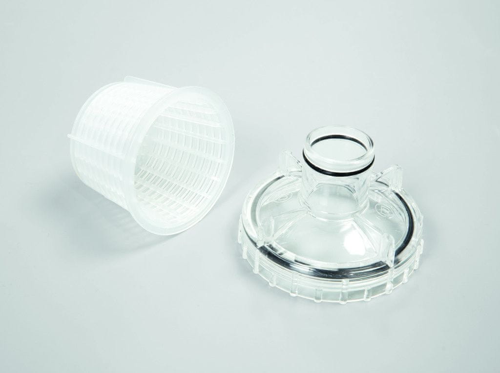 Filtrska posoda je povezana s črpalko s fleksibilno cevjo.