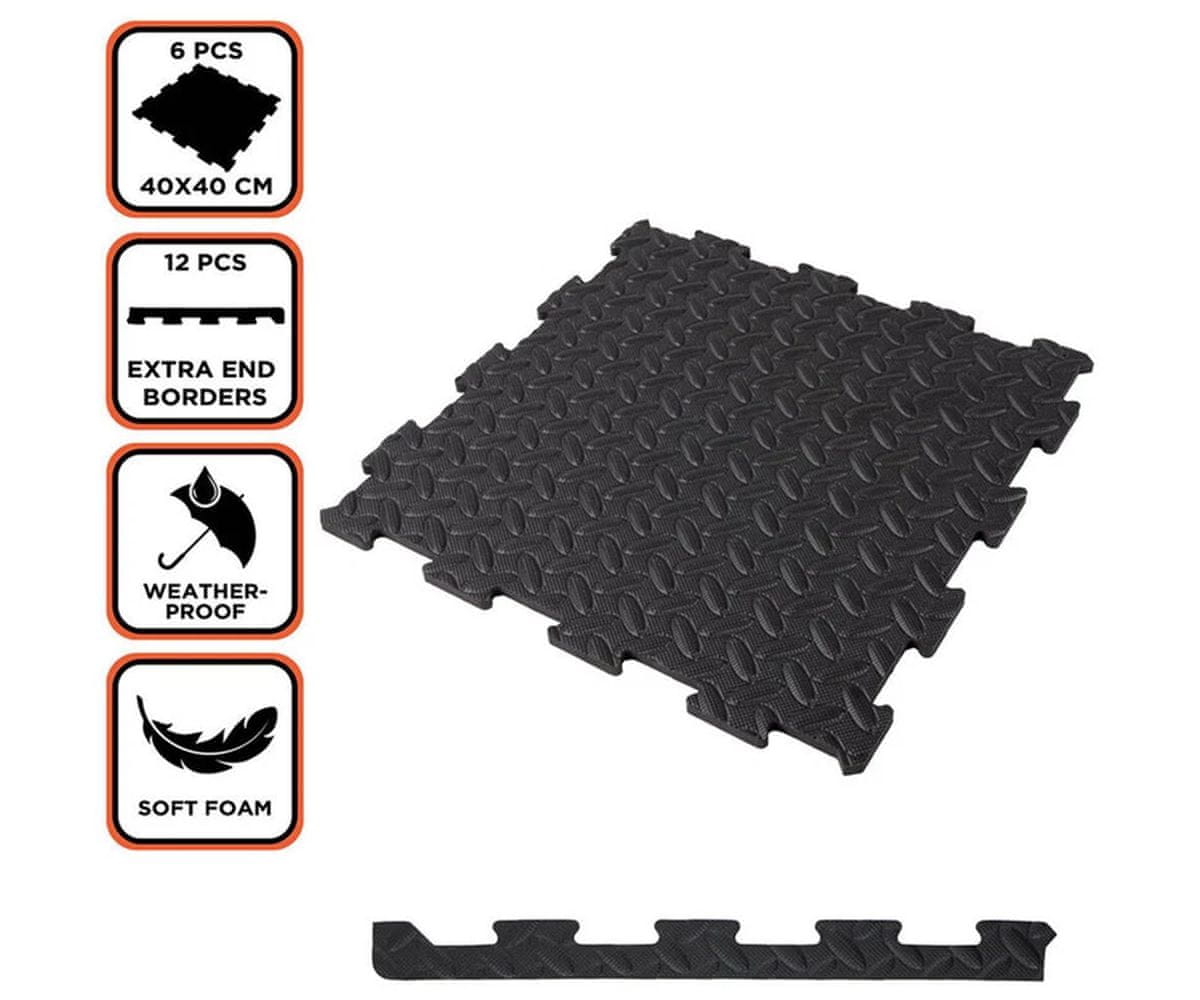 Zaščitite svoja tla in si zagotovite udobno, varno površino s kakovostnimi podnimi ploščami BLACK+DECKER. Komplet vsebuje 6 trpežnih EVA (etilen-vinil-acetat) podlog v obliki sestavljanke, dimenzij 40 × 40 × 1 cm, ki skupaj pokrijejo skoraj 1 m² površine.