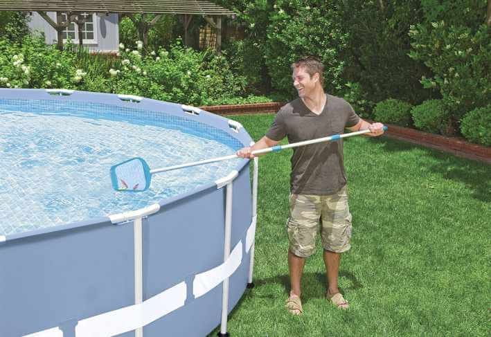 Mrežica 30 × 28 cm za odstranjevanje umazanije s površine bazena. Izboljšana zasnova za lažje zbiranje listov, vejic in žuželk. Združljiva s palico z notranjim premerom 26,2 mm. Plastična konstrukcija z osrednjim delom zbirke še manjših nečistoč. Palica ni del paketa. Celoten opis