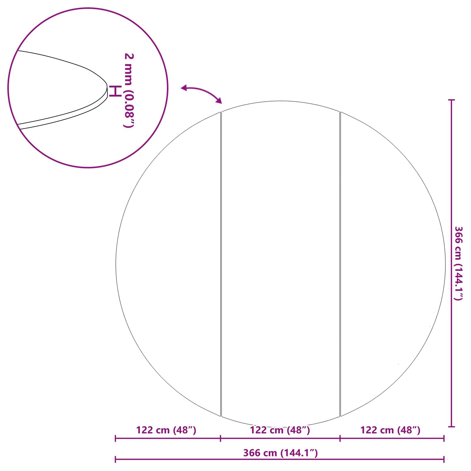 • Splošne dimenzije: 366 × 366 × 0,2 cm (D x Š x V)