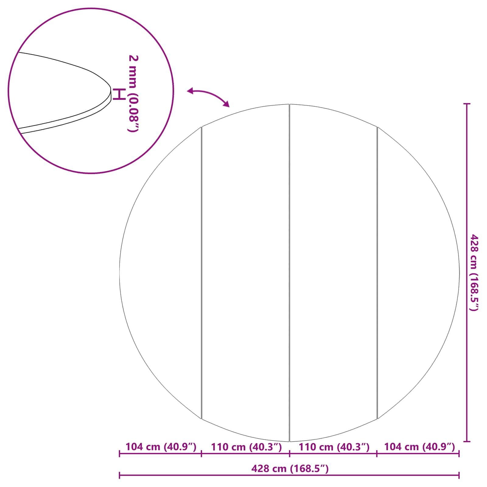 • Splošne dimenzije: 428 × 428 × 0,2 cm (D x Š x V)