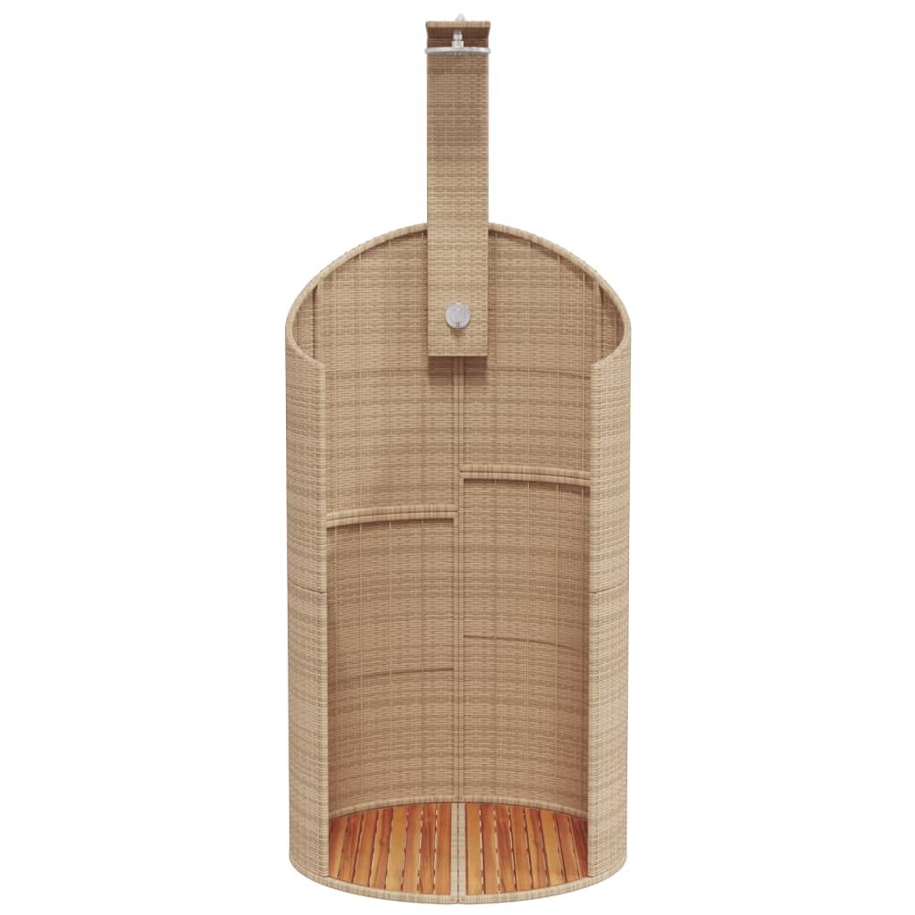 Vidaxl Zunanji tuš bež 100x100x241,5 cm poli ratan in akacijev les