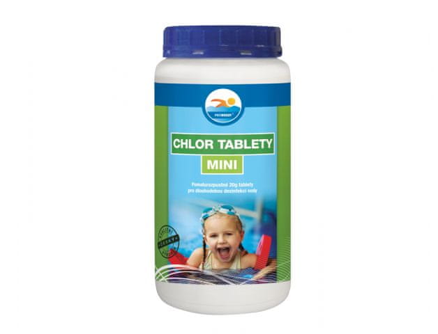 Počasi raztapljajoča se mini hranila za dolgotrajno dezinfekcijo vode. 1 tableta na 3 m3 bazenske vode se vstavi v plovec ali dozirnik za tablete. Ta količina naj bi zadostovala za vzdrževanje zahtevane koncentracije 0,3–0,5 mg/l aktivnega klora v vodi 5 do 10 dni, odvisno od dejavnikov, ki vplivajo na količino aktivnega klora v vodi, kot so temperatura vode in zraka, intenzivnost sončnega sevanja in obremenitev bazena. Pakiranje: 1 kg.