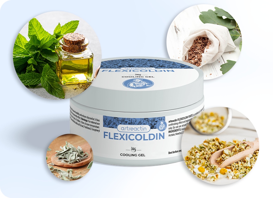 Skrbno razvita formula gela Flexicoldin Forte vsebuje štiri zeliščne izvlečke s klinično dokazano učinkovitostjo. Izdelek je obogaten tudi z zelo učinkovitimi pomožnimi snovmi. To zagotavlja takojšnje olajšanje po nanosu, se hitro vpije, zagotavlja dolgotrajno olajšanje in pomaga krepiti vezi, mišice in hrustanec.