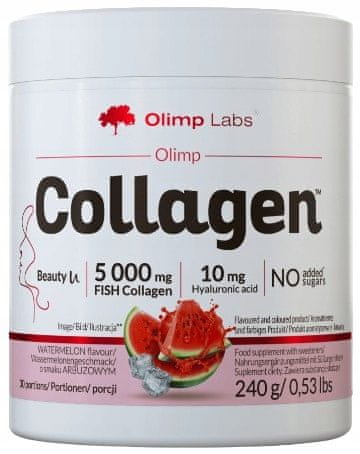 Kolagen 240g Prehransko dopolnilo Olimp Collagen™ v prahu za raztapljanje v vodi je prehransko dopolnilo s hidrolizatom ribjega kolagena, hialuronsko kislino in dodatnimi sestavinami, izbranimi zaradi njihovih dragocenih lastnosti. Izdelek je prilagojen potrebam žensk, ki jim je mar za sijočo, zdravo kožo ter močne, lepe lase in nohte. Olimp Collagen™ med drugim vsebuje: Do 5000 mg ribjega kolagena v dnevnem odmerku, ki vsebuje kolagene peptide z nizko molekulsko maso (1000–2000 Da), kar prispeva k njegovi visoki biološki uporabnosti, hialuronsko kislino – zaradi svojih lastnosti vezave vode se pogosto uporablja v vlažilni negi kože2, vitamin C, ki podpira pravilno proizvodnjo kolagena, vitamin A, vitamin B2 in biotin, ki pomagajo ohranjati zdravo kožo, selen, ki pomaga ohranjati zdrave lase in nohte ter ščiti celice pred oksidativnim stresom, izvleček grozdnih pešk, ki ima antioksidativne lastnosti in tako pomaga nevtralizirati učinke prostih radikalov. Z izbiro prehranskega dopolnila Olimp Collagen™ prejmete osvežujoč kolagen, pridobljen iz rib. Klinična študija3 je pokazala, da je uživanje kolagena pri udeležencih zmanjšalo število gub za 35 % v primerjavi z izhodiščem, prav tako pa je pokazalo pozitiven učinek na izboljšanje elastičnosti in hidratacije kože. Prehransko dopolnilo Olimp Collagen™ je izdelek z edinstveno sestavo aktivnih sestavin z osvežilnim okusom lubenice. Vsebuje sladila in ne vsebuje sladkorja. Vsebuje naravno prisotne sladkorje. Uporaba: Namen uporabe: Ta izdelek je namenjen zdravim odraslim, ki si prizadevajo ohranjati lepo in zdravo kožo, lase in nohte. Odmerjanje: Priporočen dnevni odmerek: 1 odmerek dnevno po obroku. 1 odmerek (8 g praška = 1 merica) raztopite v 250 ml vode ali druge pijače s pomočjo stresalnika vsaj 10 sekund. Zaužijte takoj po pripravi. Po uporabi vedno tesno zaprite posodo. Ne prekoračite priporočenega dnevnega odmerka. Tega prehranskega dopolnila se ne sme uporabljati kot nadomestilo za raznoliko prehrano. Priporočamo uravnoteženo prehrano in zdrav način življenja. Opomba: Ni priporočljivo za uporabo pri otrocih, nosečnicah ali doječih materah ali v primeru preobčutljivosti na katero koli sestavino. Ne uporabljajte pri osebah, ki so nagnjene k nastanku ledvičnih kamnov ali trpijo zaradi ledvičnih kamnov. Sestavine: hidrolizat ribjega kolagena (riba), maltodekstrin, arome, regulator kislosti – jabolčna kislina; vitamini (L-askorbinska kislina – vitamin C, DL-alfa-tokoferil acetat – vitamin E, nikotinamid – niacin, retinil acetat – vitamin A, kalcijev D-pantotenat – pantotenska kislina, holekalciferol – vitamin D, piridoksin hidroklorid – vitamin B6, riboflavin – vitamin B2, mononitrat tiamina – tiamin (vit. B1), D-biotin – biotin, pteroilmonoglutaminska kislina – folna kislina, cianokobalamin – vitamin B12), sladila – acesulfam K, sukraloza; izvleček grozdnih pešk (Vitis vinifera L.), bakrov bisglicinat (Albion™ bakrov aminokislinski kelat), natrijev selenit. Proizvedeno v obratu, ki uporablja sestavine iz mleka, jajc, soje, oreščkov, arašidov (arašidov), žit, ki vsebujejo gluten, rakov in mehkužcev. Sestavine: Hranilne vrednosti 1 porcija (8 g) Ribji kolagen 5.000 mg Hialuronska kislina 10 mg Vitamin C 160 mg (200 %) Vitamin A 800 µg (100 %) Vitamin E 12 mg (100 %) Vitamin D 5 µg (100 %) Tiamin (vit. B1) 1,1 mg (100 %) Riboflavin (vit. B2) 1,4 mg (100 %) Niacin 16 mg (100 %) Pantotenska kislina 6 mg (100 %) Vitamin B6 1,4 mg (100 %) Biotin 250 µg (500 %) Folna kislina 200 µg (100 %) Vitamin B12 2,5 µg (100 %) Selen 27,5 µg (50 %) Baker 0,5 mg (50 %) Izvleček grozdnih pešk (Vitis vinifera L.) 25 mg od tega: proantocianidini (95 %) 23,75 mgNRV – referenčni vnos. Neto teža: 240 g Prehranskih dopolnil ni mogoče uporabljati kot nadomestilo za raznoliko prehrano ali zdrav način življenja. Ne prekoračite priporočenega dnevnega odmerka. Prehranska dopolnila shranjujte izven dosega majhnih otrok. Pred uporabo tega izdelka priporočamo, da preberete podrobne informacije na embalaži ali priloženi navodili. Pogoji shranjevanja: Hranite v tesno zaprti posodi. Na hladnem in suhem mestu, izven dosega otrok. Zaščitite pred svetlobo. Proizvajalec: OLIMP LABORATORIES Sp. z o.o. Pustynia 84F39–200 Dębica