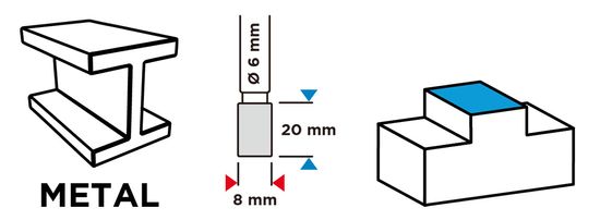 Rezalnik za kovine GRAPHITE (ref. št. 55H351) tipa A (cilindričen) in velikosti 8 × 20 mm je orodje, zasnovano za ravni brusilnik za rezanje ali piljenje obdelane površine. Zasnovan za delo na materialih, kot so kovina, aluminij in plastika. Zaradi uporabe cementnega karbida je orodje zelo trdo in odporno na abrazivno obrabo. Ta rezalnik ima dvojne reze, ki omogočajo enostavno odstranjevanje odvečnega materiala iz obdelanih materialov.