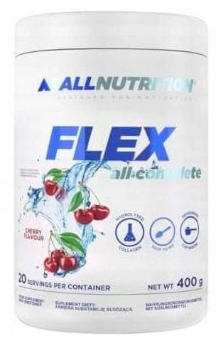 ALLNUTRITION FLEX ALL COMPLETE 400g Okus: Češnja Sklepni hrustanec, znan tudi kot hrustančno tkivo, preprečuje odrgnino kosti, ki so v stiku. S staranjem hrustanec izgubi sposobnost regeneracije, kar pomeni možnost izgube hrustanca. Z ALLNUTRITION FLEX ALL COMPLETE boste pospešili regeneracijo in podprli obnovo poškodovanega hrustanca s spodbujanjem proizvodnje kolagena in obnavljanjem elastičnosti sklepov. Lahko prebavljive sestavine, ki so na voljo v obliki prahu, so v tem procesu regeneracije najučinkovitejše. ALLNUTRITION FLEX ALL COMPLETE je izdelek, katerega glavna sestavina je kolagen. Kolagen, beljakovina, pomaga ohranjati zdrave kosti. Vsebuje tudi številne podporne sestavine. Med njimi je vitamin C, ki pomaga pri pravilni proizvodnji kolagena za zagotovitev pravilnega delovanja hrustanca in kože. POSPEŠI REGENERACIJO PO POŠKODBAH. KOLAGEN LAJŠA OKOLJENOST SKLEPOV. NE VSEBUJE BARVIL! VSEBUJE SAMO PREVERJENE IN VARNE SESTAVINE. ZAŠČITA SKLEPOV, HRUSTANCA, KITE, VEZI IN KOSTNIH TKIV. Ne glede na šport, ki ga izvajate, ste izpostavljeni tveganju za poškodbe mišično-skeletnega sistema. ALLNUTRITION FLEX ALL COMPLETE in njegova glavna sestavina, kolagen, predvsem obnavlja in ohranja zdravje sklepnih kapsul, hrustanca, kosti in vezi. ALLNUTRITION FLEX ALL COMPLETE vsebuje vrsto snovi, vitaminov in mineralov, med katerimi so najpomembnejši: Hidroliziran kolagen – ker aminokislinska struktura, značilna za kolagen, najdemo le v vretenčarjih, se beljakovine živalskega izvora uporabljajo za proizvodnjo zdravil in krem. Dolga leta se je neposredno uporabljal kolagen, izoliran iz kože, hrustanca in kit. V osemdesetih letih prejšnjega stoletja so poljski znanstveniki patentirali novo metodo za pridobivanje kolagena za farmacevtsko in kozmetično industrijo. S postopkom hidratacije je bil pridobljen protein, ki je bil filtriran tako, da ima najvišjo afiniteto za tisti v človeškem telesu. Je stabilen pri sobni temperaturi, ne potrebuje konzervansov in zaradi hidratacije lažje prodre in se veže na tkiva. Običajno je obogaten tudi z vitamini, hialuronsko kislino, mlečno kislino in elastinom – snovmi, ki pospešujejo regeneracijo kože in tvorbo kosti. Ta pripravek je hidroliziran kolagen. Glukozamin sulfat – temeljni cilj rednega jemanja glukozamin sulfata je pospešiti regeneracijo hrustanca in kostnega tkiva, poškodovanega zaradi prekomerne obremenitve posameznih sklepnih komponent. Dodatna korist v primeru poškodbe je lahko znatno zmanjšanje bolečine in drugih simptomov, ki ovirajo vsakodnevno delovanje. Pomembno se je zavedati, da so mobilni sklepi v človeškem okostju nenehno ogroženi zaradi prekomerne telesne aktivnosti, debelosti in prehrane, ki ji primanjkuje esencialnih hranil. Glukozamin sulfat stimulira ustrezne celice in jim daje impulz med napornim procesom obnove vezivnega tkiva s sintezo proteoglikanov. Posredno tudi preprečuje povečano izgubo kalcija iz kosti. Zaradi svoje hidrofilne narave glukozamin absorbira vodo, jo zadržuje v hrustancu in ga dodatno hrani, s čimer mu daje želeno odpornost na mehanske deformacije. MSM ali metilsulfonilmetan je organska žveplova spojina. To prehransko dopolnilo se pogosto priporoča pri težavah s sklepi, pa tudi za izboljšanje stanja las, kože in nohtov. Organsko žveplo ima neverjetne terapevtske in preventivne lastnosti. Pravijo, da ima razstrupljevalne, anabolične in regenerativne lastnosti. Vendar pa je lahko žveplo v nekaterih primerih škodljivo. Žveplo zagotavlja prožnost povezav med celicami. Ko ga primanjkuje, celične membrane postanejo toge, trde in manj prepustne. Vendar pa bi morale celične membrane omogočati vstop esencialnih hranil v celico in izločati odpadne produkte. Močne in učinkovito delujoče celične membrane so ključne za zdravje vsake celice v našem telesu. Žveplo sodeluje tudi pri sintezi kolagena in keratina, ki sta bistvena za močne in zdrave lase, kožo in nohte. Priporočen odmerek: 1 odmerek (20 g) dnevno raztopite v 300 ml vode ali soka. Za preventivno nego vzemite en odmerek dnevno. Pri bolečinah v sklepih ali med rehabilitacijo po poškodbi vzemite 2 odmerka dnevno. Opombe: Prehransko dopolnilo. Tega izdelka ne smete uporabljati kot nadomestilo za raznoliko prehrano; namenjen je predvsem tistim, ki se gibljejo. Ne prekoračite priporočenega dnevnega odmerka. Po uporabi vedno zaprite posodo. Hranite na hladnem in suhem mestu, izven dosega majhnih otrok.