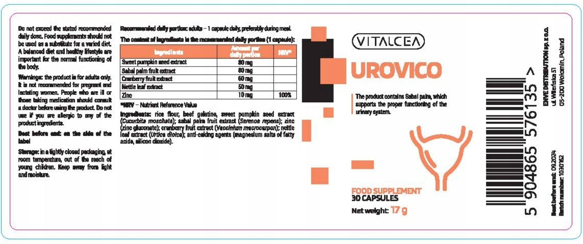UROVICO je prehransko dopolnilo, ki podpira pravilno delovanje celotnega sečil. Aktivne sestavine v obliki muškatne buče in žagaste palme podpirajo delovanje ledvic in lahko preprečijo urinsko inkontinenco. Kopriva, ki jo vsebuje dopolnilo, pomaga moškim ohranjati zdravo prostato. Dodatek lahko pomaga ublažiti urološke težave tako pri ženskah kot pri moških.
