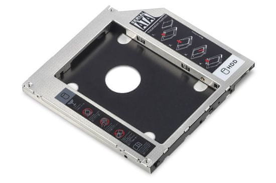 Montažni okvir DIGITUS SSD/HDD za režo za pogon CD/DVD/Blu-ray je odlična rešitev za nadgradnjo vašega prenosnika. S tem okvirjem lahko zamenjate optični pogon (CD/DVD/Blu-ray) s trdim diskom. Zagotovite okvir z originalno pogonsko odprtino in zamenjava ostane navzven nepomembna. Okvir ustreza višini gredi 9,5 mm in je zasnovan za 2,5" SSD SSD in HDD. DIGITUS SSD/HDD montažni okvir za režo za pogon CD/DVD/Blu-ray se uporablja v skoraj vseh predelih za optične pogone z vmesnikom SATA .Služi za razširitev pomnilnika z uporabo trdega diska/SSD in omogoča hitrejši dostop do vaših podatkov, ki jih vsebuje. DIGITUS DA-71108 ADAPTER PROSTORA ZA SHRANJEVANJE / 5,25" SLIM LINE NA 2,5" | DA-71108Posebne lastnosti