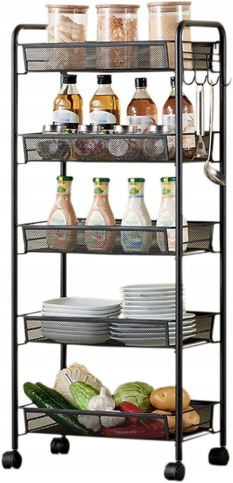 MOBILNY REGAŁ NA KÓŁKACH DO KUCHNI ŁAZIENKI 5 PÓŁKI CZARNY RG26