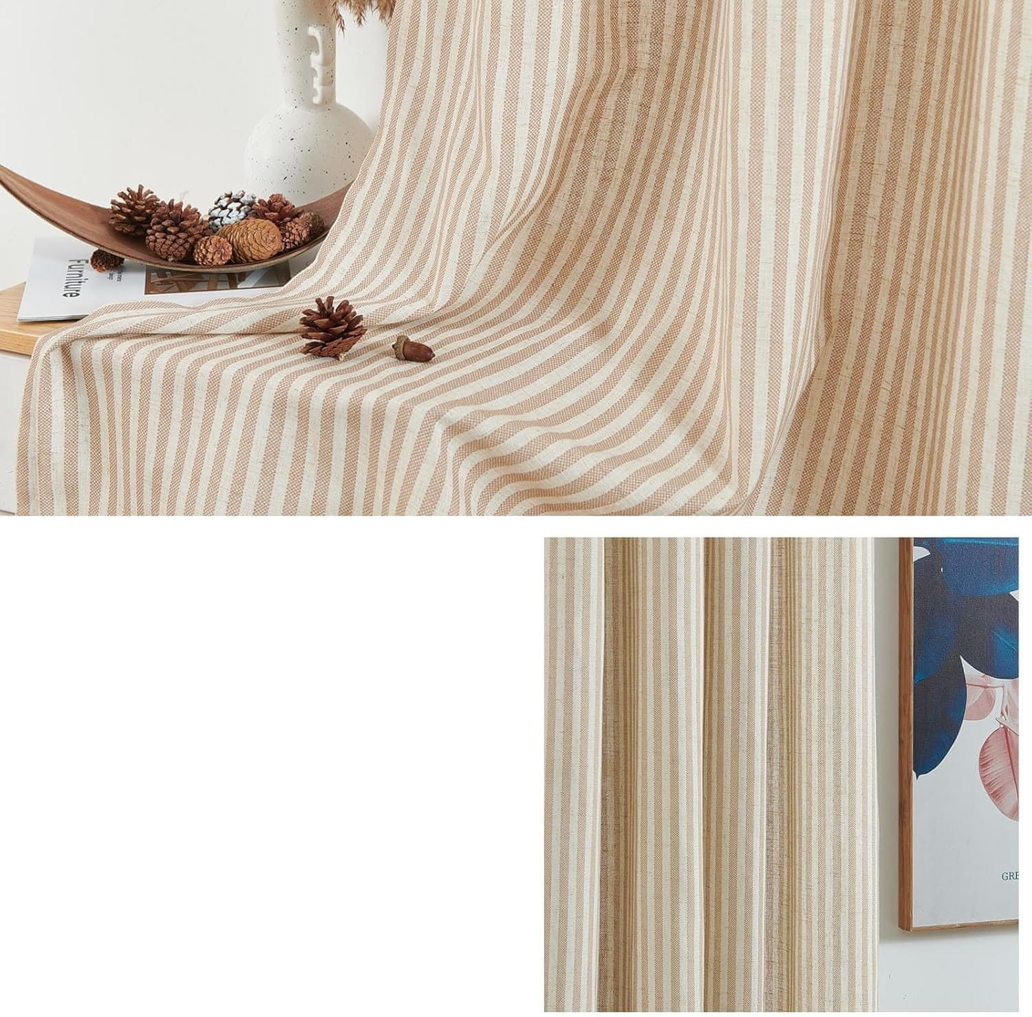 TOPICK Zavesa za Dnevno Sobo z Obročki 130×245 cm Bež s Črtami 1 Kos