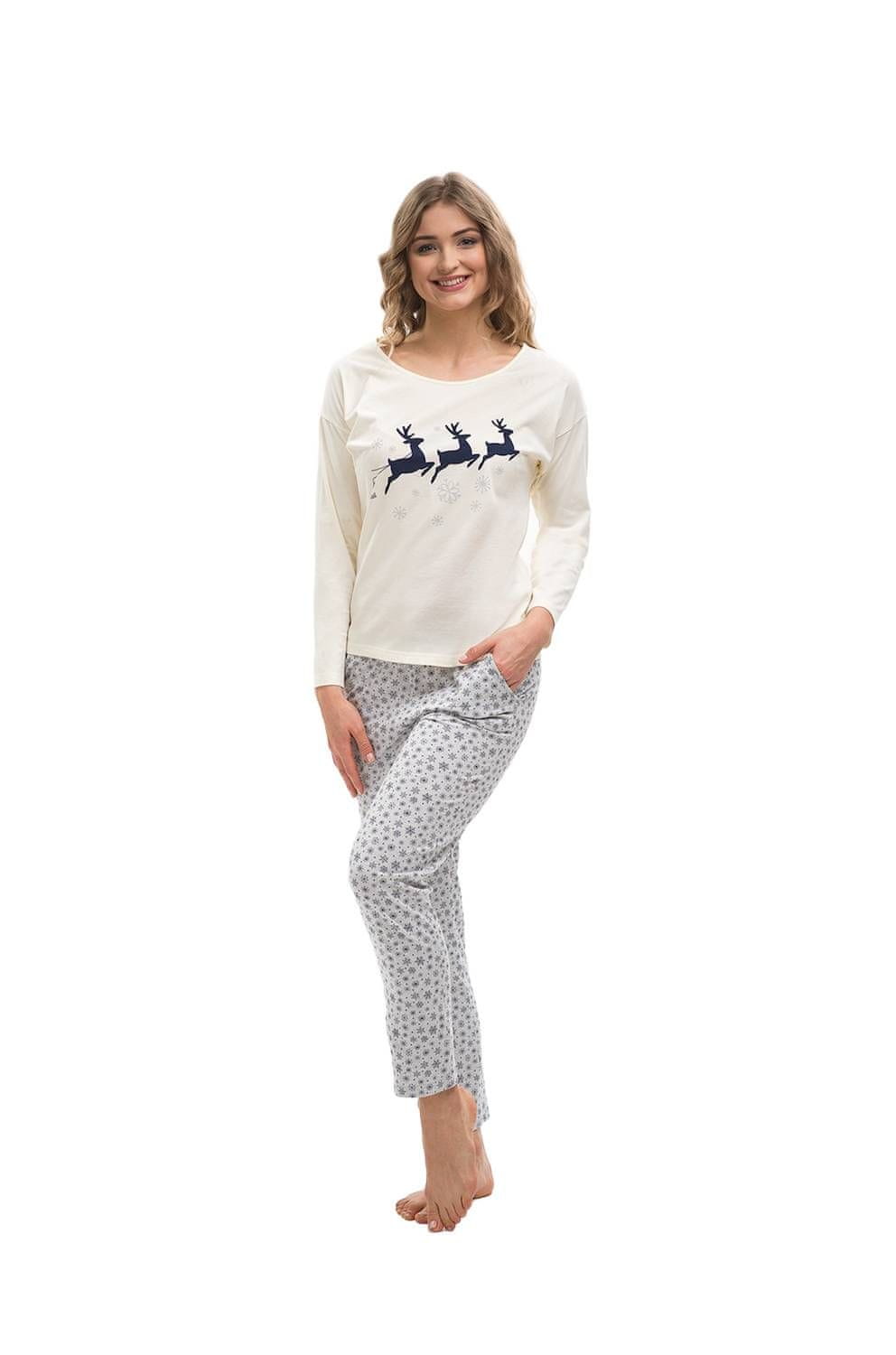 MLADINSKA PIŽAMA ŽENSKA 2XL ECRU BEŽ Z DOLGIMI ROKAVI BOŽIČKA JELENČKA ZIMSKA
