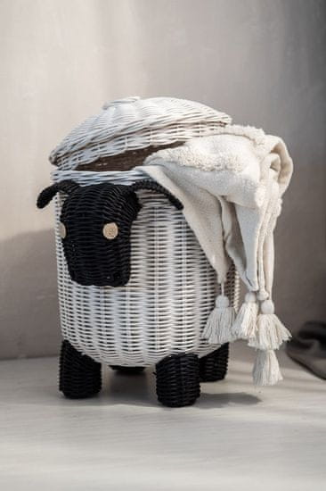 - Edinstvena košara v obliki jagnječjega telesa v beli barvi s črnimi detajli.