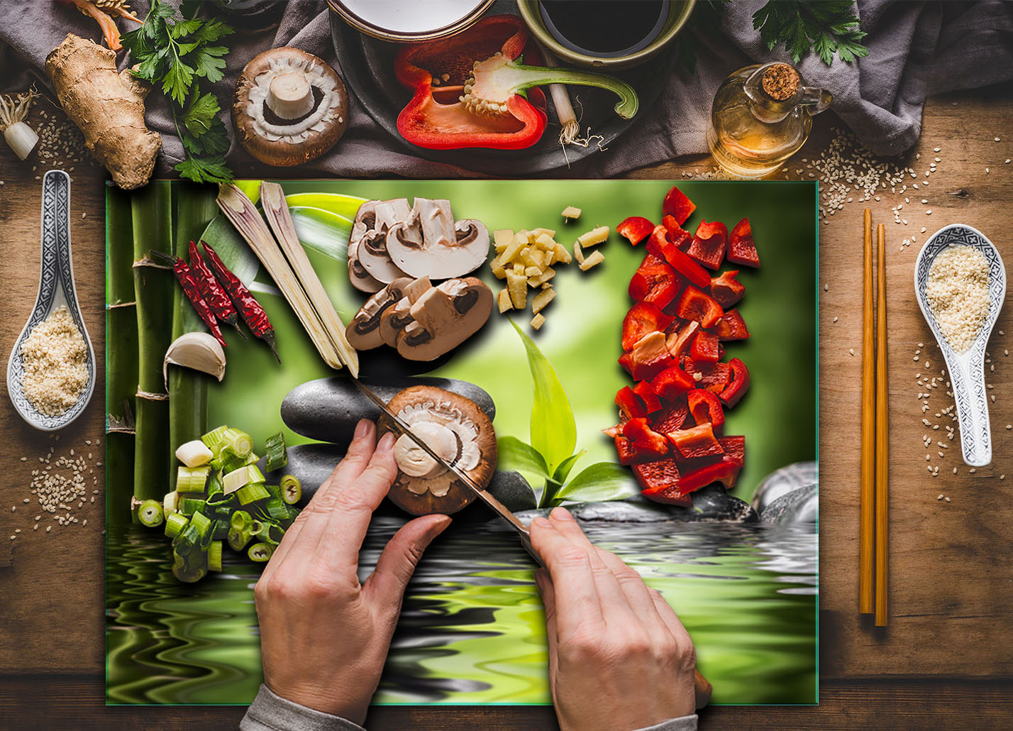 shumee Steklena rezalna deska kaljena 30x22 bambus