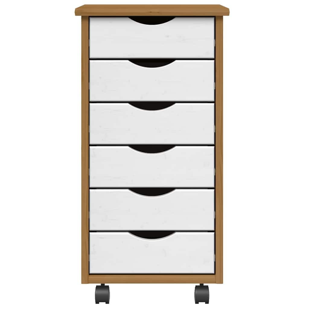 Vidaxl Premična omarica s predali MOSS medeno rjava trdna borovina