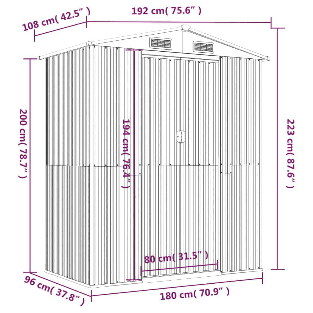 Vidaxl Vrtna lopa svetlo siva 192x108x223 cm pocinkano jeklo
