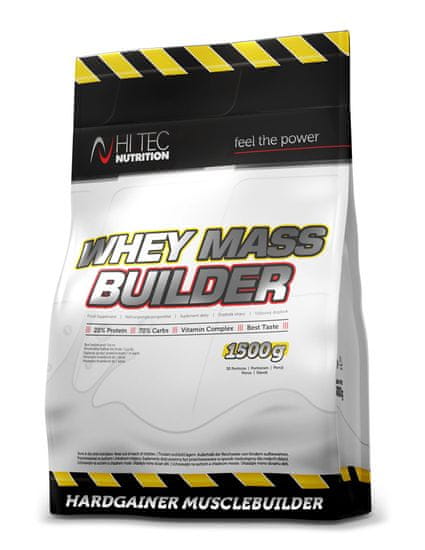 Prehransko dopolnilo Whey Mass Builder je visokokalorični ogljikohidratno-beljakovinski pripravek za športnike, ki želijo hitro povečati telesno maso. Whey Mass Builder je temelj močnih in velikih mišic. Mešanica glukoznih polimerov, oligomerov in monomerov, tj. ogljikovih hidratov z različnimi dolžinami verig, uporabljena v pripravku, omogoča dolgotrajno in dosledno oskrbo delujočih mišic z bistveno energijo, pa tudi hitro obnavljanje zalog mišičnega glikogena in intenziviranje sinteze mišičnih beljakovin. Whey Mass Builder telesu zagotavlja popolno zalogo eksogenih in endogenih aminokislin v ustreznih razmerjih in količinah, potrebnih za okrevanje mišičnega tkiva po vadbi in rast mišic med fazo prekomerne kompenzacije. Vir aminokislin v Whey Mass Builder je mešanica sirotkinih in pšeničnih beljakovin, kar zagotavlja visoko biološko uporabnost in biološko vrednost pripravka. Poleg tega je Whey Mass Builder obogaten s celotnim naborom vitaminov B, C in E, ki so bistveni za pravilno presnovo energije med intenzivno telesno aktivnostjo. Visoka vsebnost kalorij, hranil in vitaminov bo bodybuilderjem zagotovila maksimalno povečanje telesne teže. Ta izdelek je namenjen vitkim športnikom s hitrim metabolizmom v obdobjih izgradnje mišične mase in moči, pa tudi vzdržljivostnim športnikom, kot celovito prehransko dopolnilo.