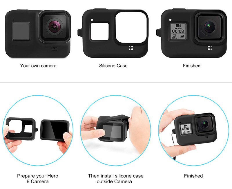 Silikonski ovitek za GoPro Hero 8 brez ovitka za lečo. Ovitek prepreči, da se kamera popraska in ublaži padce. Celoten opis