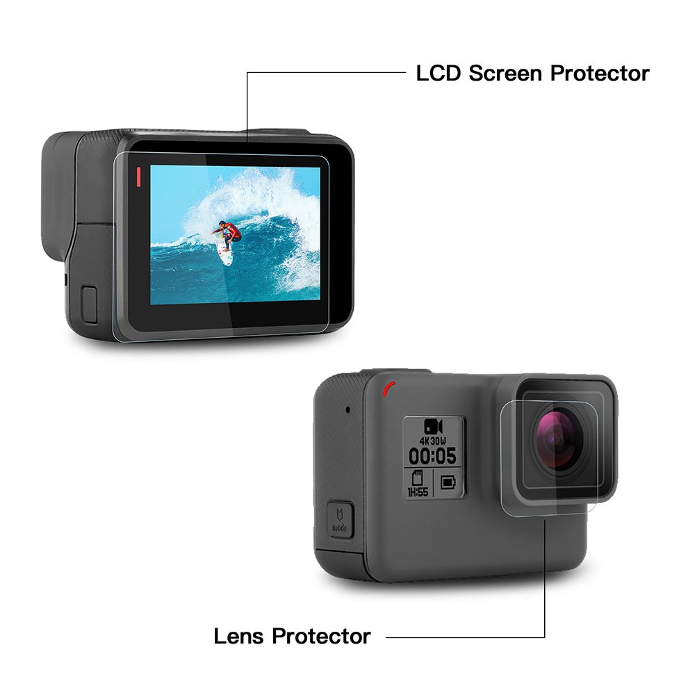 Posebno oblikovana zaščita zaslona in leč, narejena iz pravega stekla (0,33mm), ki bo učinkovito ščitila vaš GoPro pred zunanjimi praskami.