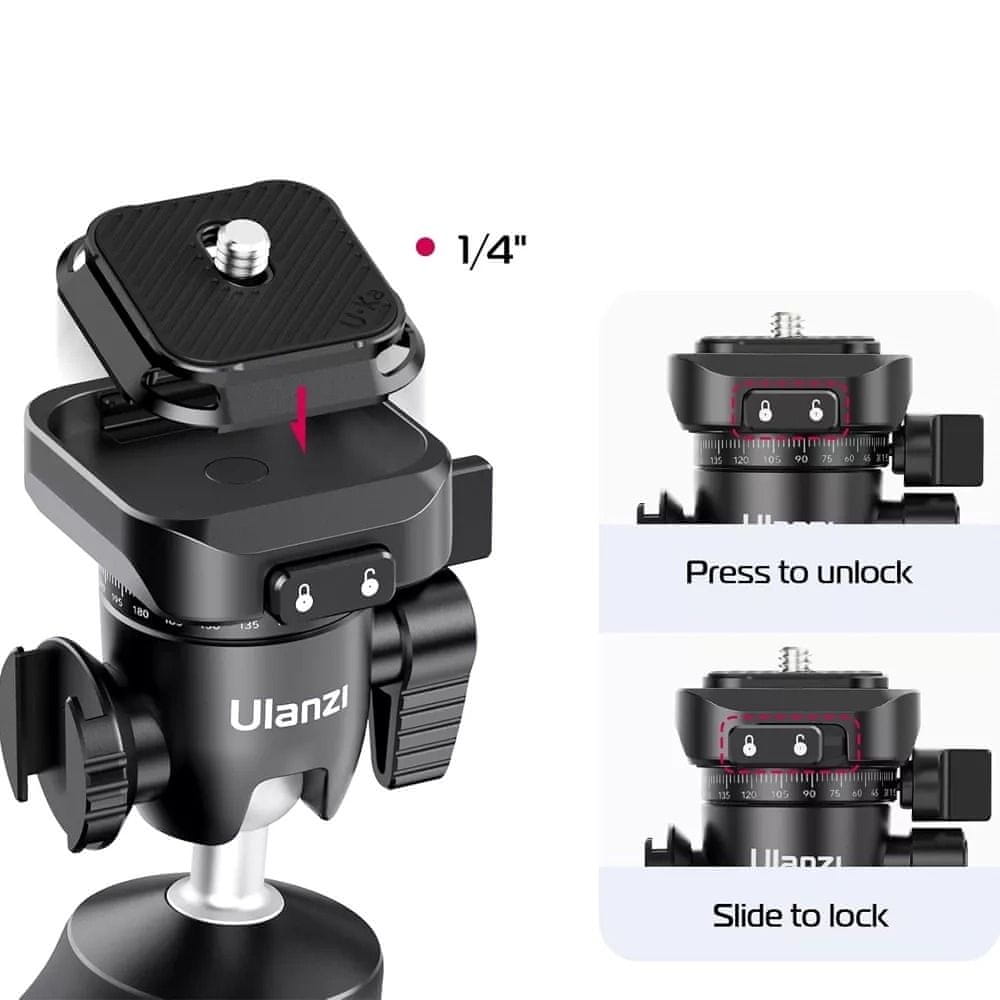 Univerzalni navoj 1/4", idealen za pritrditev večine fotoaparatov.