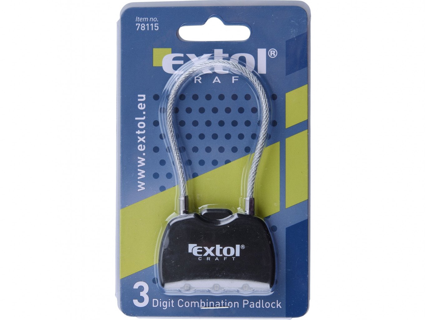Extol Craft Kombinirana ključavnica s tremi številkami. po kodi, dolžina kabel 150mm