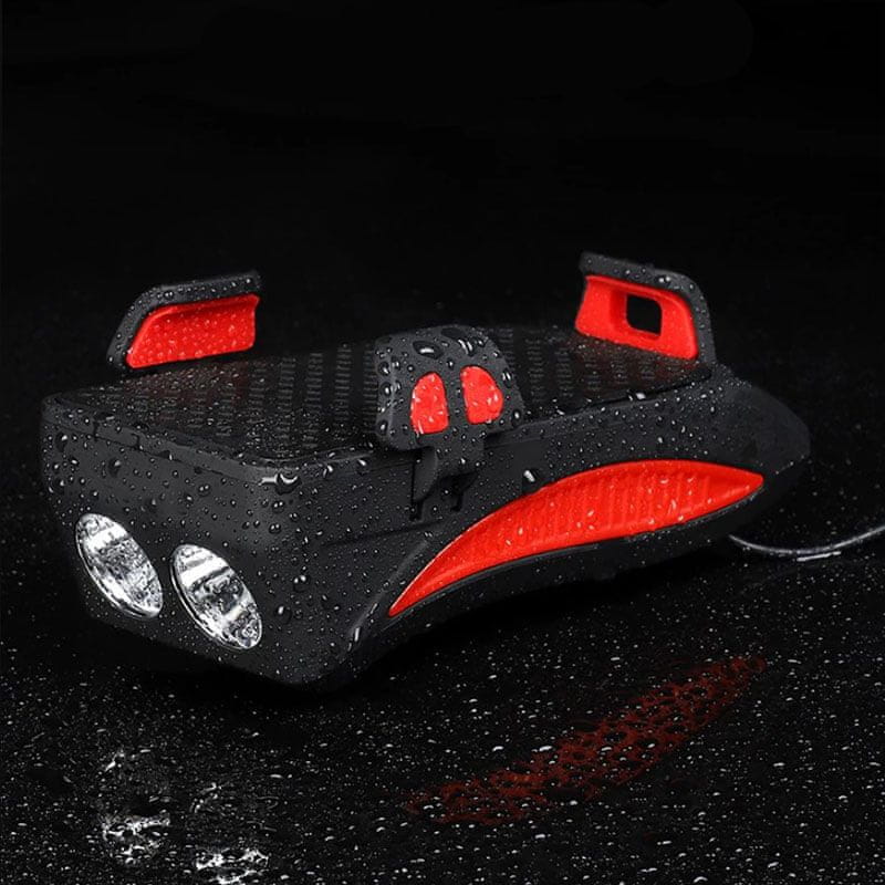 • Komplet kolesarskih luči vključuje sprednjo luč z držalom za telefon, funkcijo prenosne baterije in hupo ter zadnjo luč.