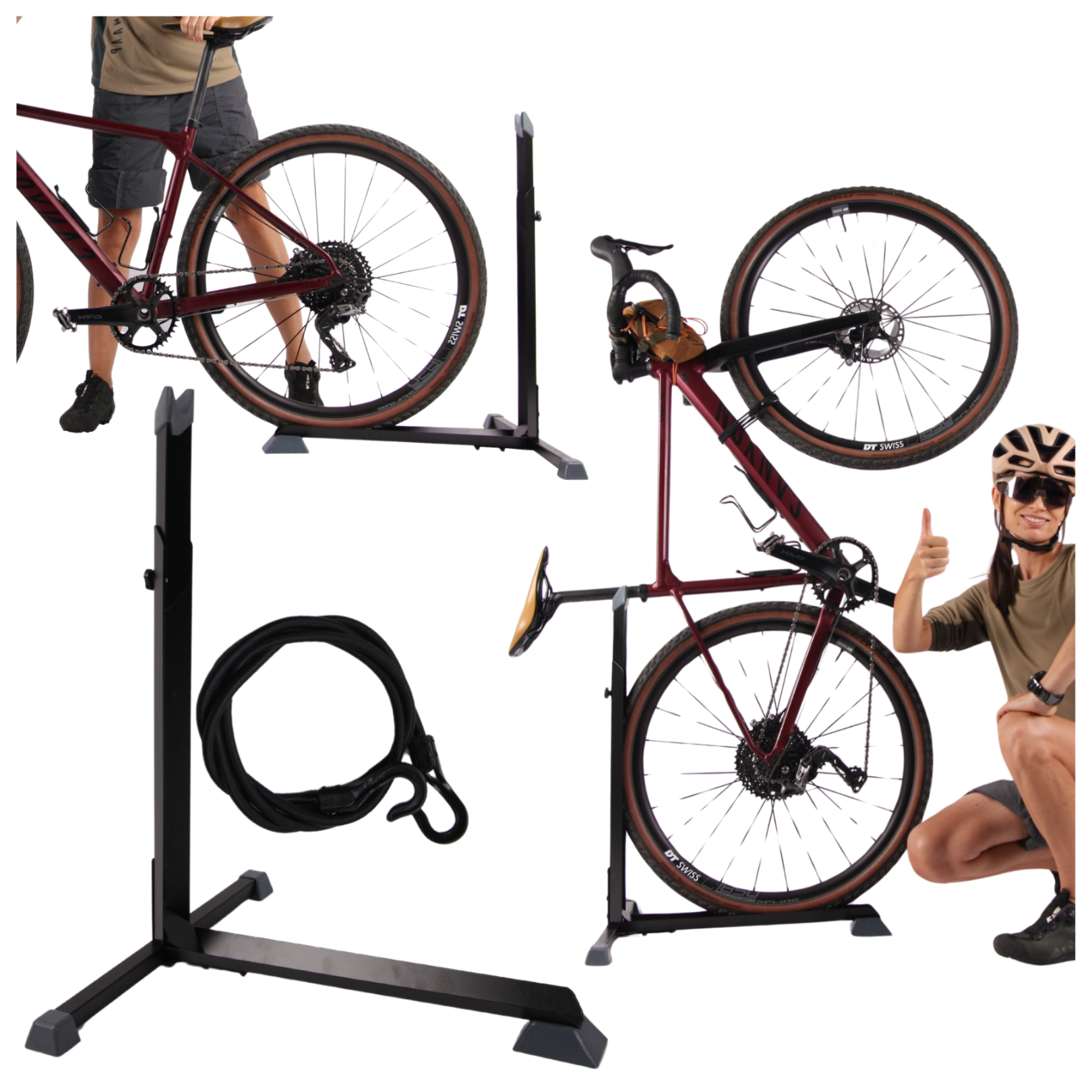 • ✅Stabilnost in varnost – zasnova zagotavlja stabilnost, varnost in prostorsko varčno namestitev v samo nekaj sekundah. Noge stojala so obložene z nedrsečimi blazinicami, zaradi česar je stojalo stabilnejše in preprečuje premikanje pri postavljanju kolesa nanj