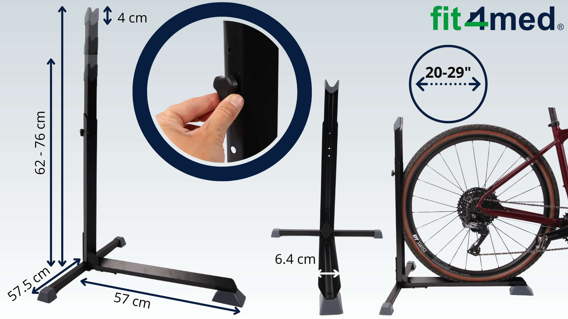 • ✅Zahvaljujoč možnosti nastavitve višine v območju od 62 do 76 cm lahko stojalo enostavno prilagodite velikosti koles vašega kolesa (20–29")