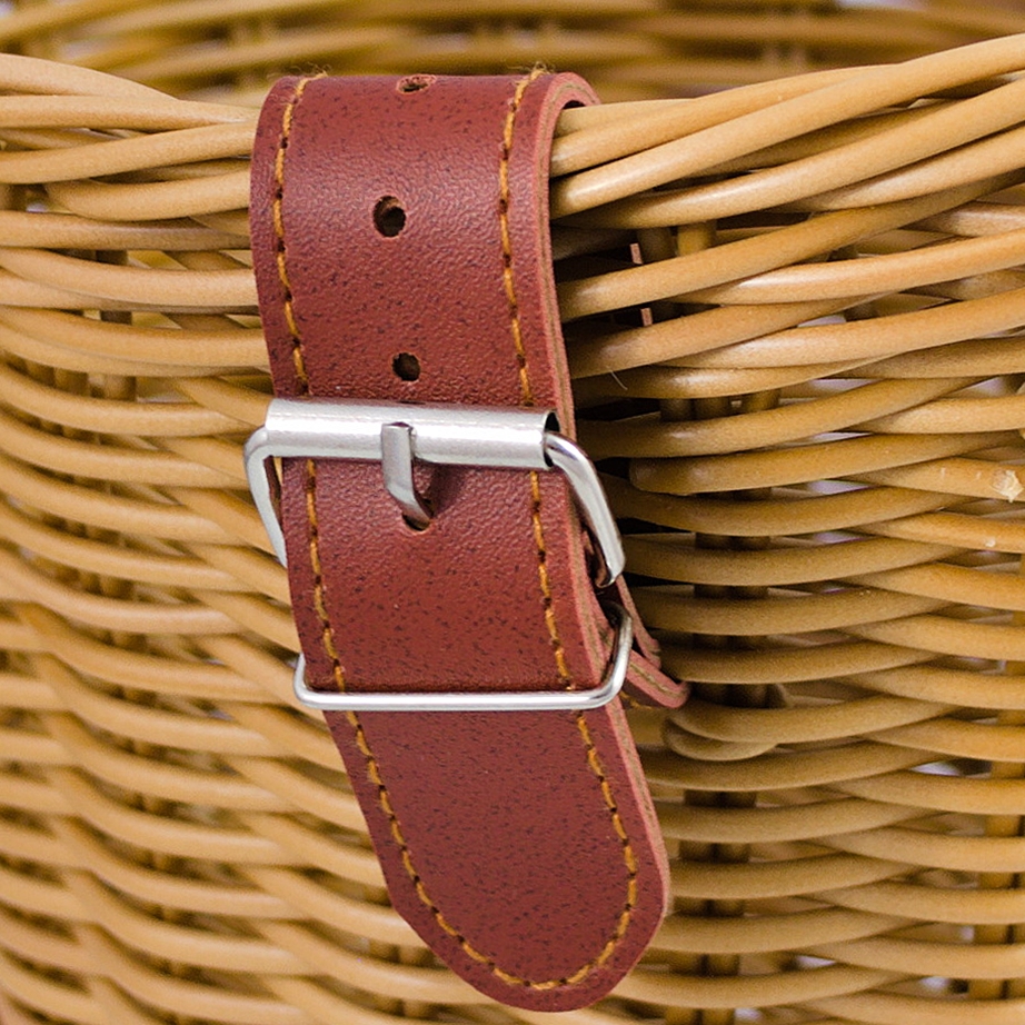 Nastavljivi usnjeni trakovi vam omogočajo, da ga obesite na krmilo ali prtljažnik – to je zelo priročna rešitev, saj ga lahko kadar koli odstranite in obesite, ne da bi morali nositi orodje.