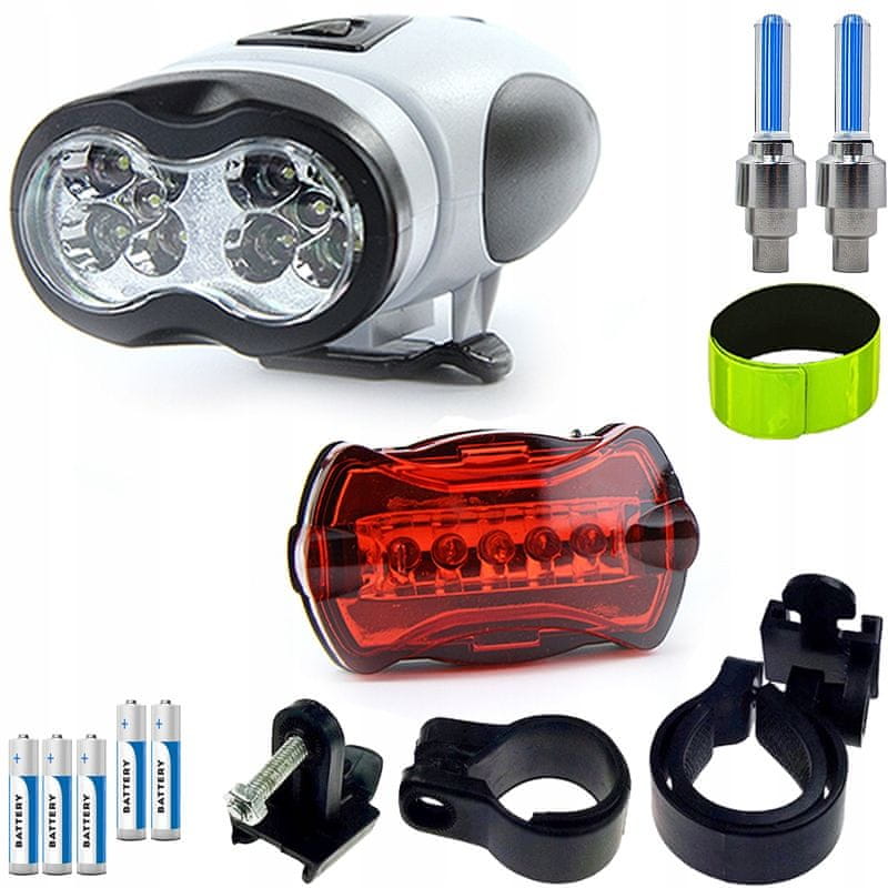 SVETILKA spredaj / zadaj LED KOMPLET ZRAČNIKI kolo LED LUČ ZA KOLESA SPREDAJ + ZADAJ Svetleči ventili GRATIS 5×AAA baterije GRATIS Odsevni trak GRATIS Držalo za kolo Spredaj se napaja s 3, zadaj pa z 2 AAA baterijama, ki ju priložimo GRATIS Sprednja 10 LED svetilka ima dva načina delovanja – neprekinjeno in pulzno. Zadnja kolesarska luč je opremljena s 5 močnimi diodami. Svetilka ima 7 načinov delovanja. KOMPLET VKLJUČUJE: Sprednja LED svetilka – 10 LED Zadnja LED svetilka – 5 LED Sprednji nosilec za kolo Zadnji nosilec za kolo Odsevni trak (naključna barva) – GRATIS Barvni ventili GRATIS Baterije GRATIS (3 kosi spredaj, 2 kosi zadaj) Stanje: Novo Proizvajalčeva koda: 7427070240175 Znamka: Druga znamka | ZR7 Model: ZR7 Tip: komplet Prevladujoča barva: siva Teža (g): 151 Napajanje: baterija Svetlobni vir: LED dioda Vsebina kompleta: baterije | svetilka | svetilka | držalo za krmilo Teža izdelka s posamezno embalažo: 0,5 EAN: 7427070239841