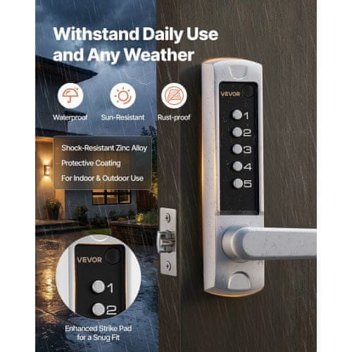 VEVOR Mehanski ključavnica za vrata brez ključa 2.0 nadgradnja kode 5-mestna srebrna