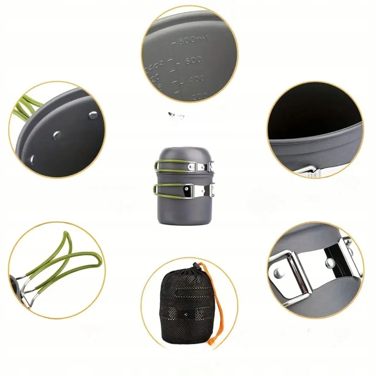 shumee Prenosni kuharski set za kampiranje z dvema loncema in jedilnim priborom za preživetje