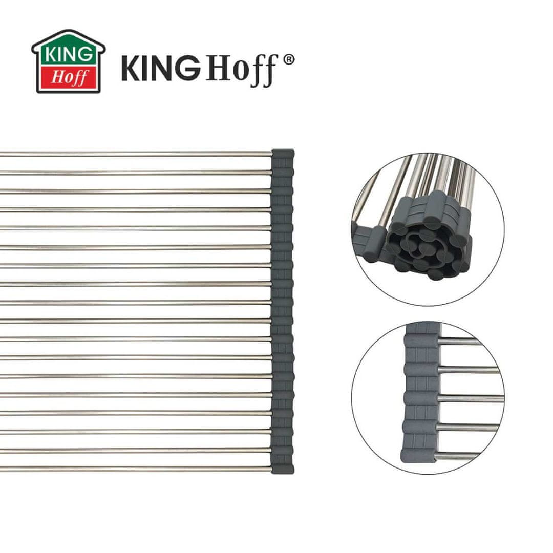 KINGHoff KH-1903 Podloga za sušenje posode iz nerjavečega jekla s silikonsko prevleko – 45 × 32 cm | Sodobno sušenje brez zavzemanja prostora
