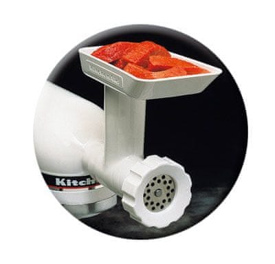 **Dodatek za mletje hrane **zelo hitro zmelje meso, čvrsto sadje in zelenjavo, suh kruh in sir. Na voljo imate plošči za fino ali grobo mletje. Ta naprava vam omogoča **hitro in enostavno mletje **hrane!