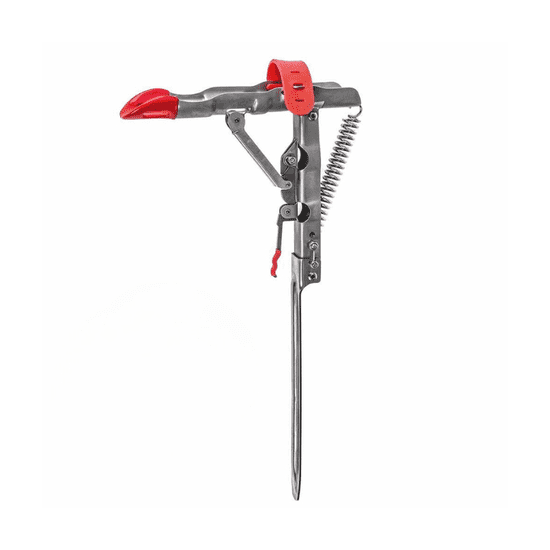 Ribiška palica se po nasloni na držalo za palice in se zaskoči z vzmetnim mehanizmom, ki bo takoj po prvem prijemu sprostil in ujel ribo.