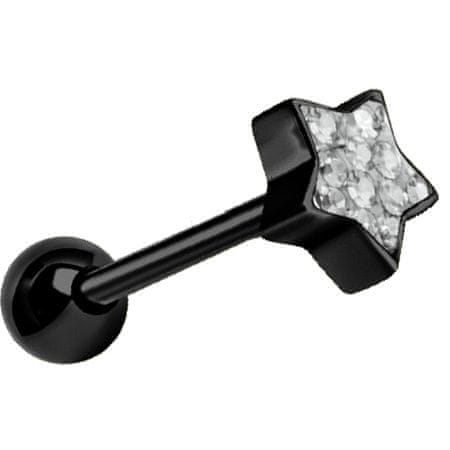 shumee Črn zvezdast piercing za jezik z belimi kristalčki - KJ-007 1.6/14/5