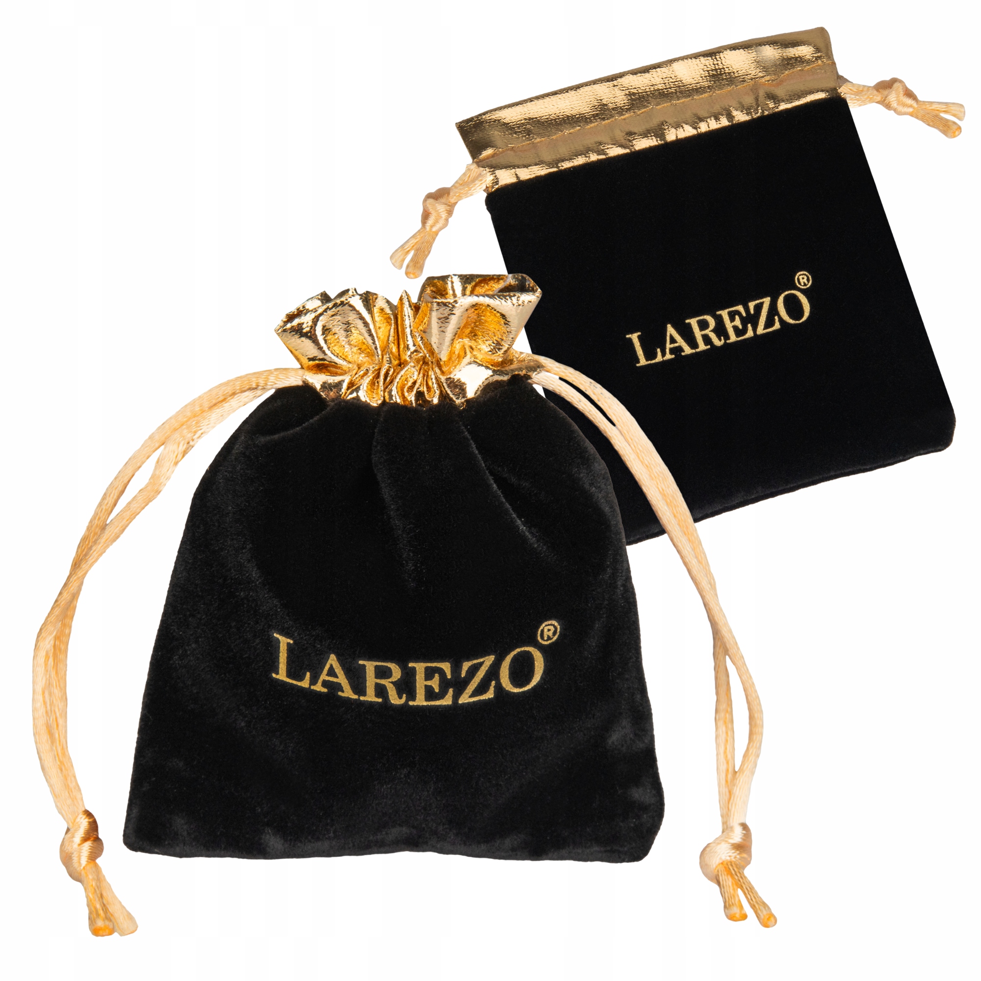 Črna žametna torba z zlatim logotipom Prostorna TORBA ZA NAKIT Celoten opis