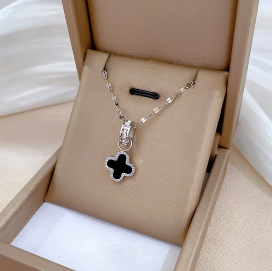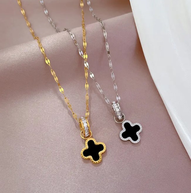 Ogrlica z deteljico in kubičnim cirkonom – kirurško jeklo