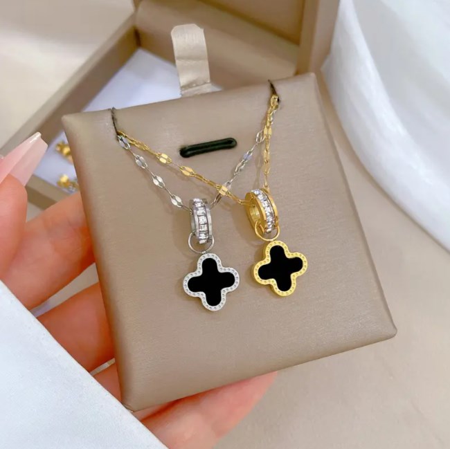 Ogrlica z deteljico in kubičnim cirkonijem je videti zelo elegantna, na prvi pogled jo ni mogoče ločiti od zlatih kompletov iz dragih zlatarn. Zasnovana je bila v skladu z najnovejšimi modnimi trendi. Zahvaljujoč domiselnim oblikam doda ženski, ki jo nosi, čar. Popolna je za vsakodnevno nošenje in večje dogodke. Primerna je tudi kot darilo.