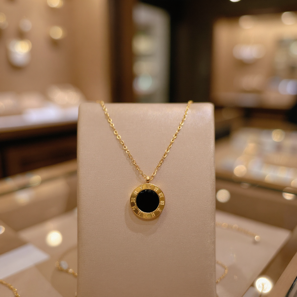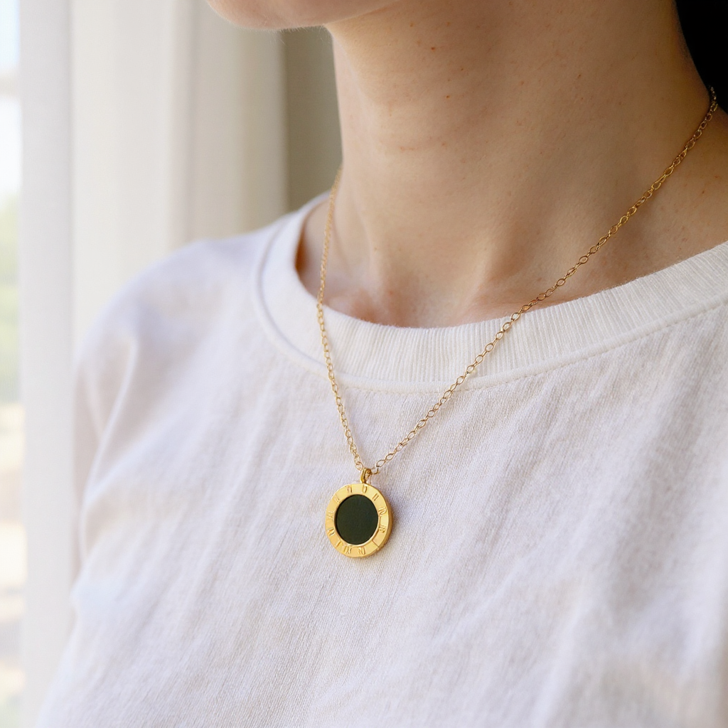 Ogrlica z rimskimi številkami – eleganten okrogel obesek iz zlata Celoten opis