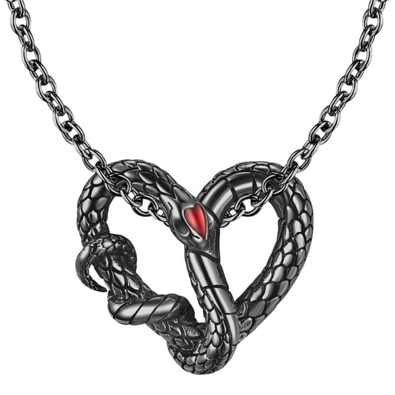 Izvirna, unikatna ogrlica, izdelana iz najvišjega srebra 925 v črni barvi. Ogrlica prikazuje kačo, razporejeno v obliki srca.
