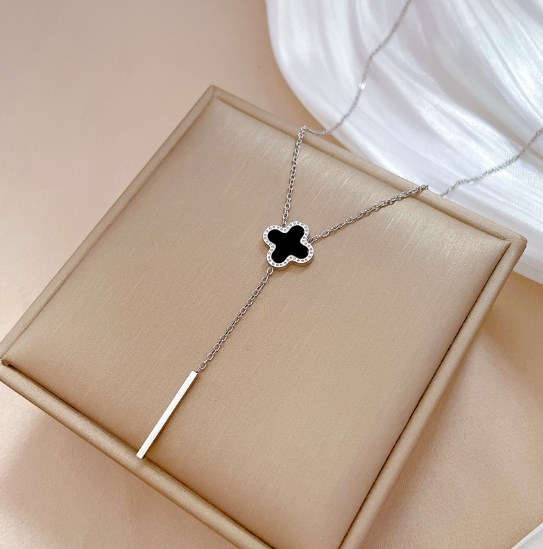 Ogrlica z deteljico in kubičnim cirkonom – kirurško jeklo