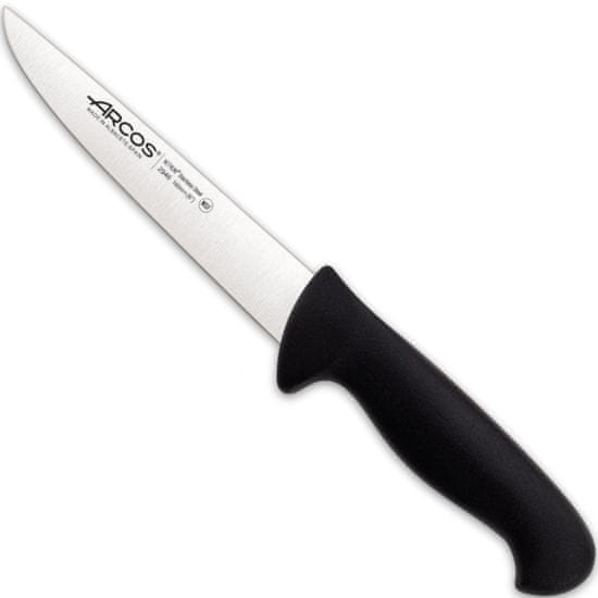 Proizvajalčeva koda: 294625 Serija 2900 združuje ergonomijo, moč in enostavnost, ki zagotavlja dolgotrajno in udobno uporabo. Nož je izdelan v Španiji. Rezila so izdelana iz valjane pločevine – inovativnega, martenzitnega nerjavečega jekla NITRUM® s povečano trdoto in odpornostjo proti koroziji. Ročaji so izdelani iz polipropilena, ki se brizga neposredno na zatič, kar poveča vzdržljivost spoja. Površina ročajev je teksturirana in zelo hrapava, kar preprečuje zdrs iz roke (proti zdrsu). Ročaji imajo prevleko BACTIPROOF SILVER® za zmanjšanje kopičenja bakterij na minimum. Ima povečano odpornost na visoke temperature. Popoln za razčetverjenje in rezanje surovega mesa. Nož ni primeren za pomivanje v pomivalnem stroju. Lastnosti izdelka: – Močan, stabilen rezalni rob – primeren za četrtinčenje in rezanje mesa, – Rezilo iz valjane pločevine, – Inovativno nerjaveče jeklo NITRUM®, – Antibakterijski premaz na ročaju, – Visoka trdota rezila, povečana odpornost proti koroziji, – Z NSF certificirano. Tehnični parametri: – Številka izdelka – 294625 – Stanje artikla – Novo – Znamka – Arcos – Dolžina ročaja (mm) – 146 – Dolžina (mm) – 306 – Dolžina rezila (mm) – 160 – Barva – črna – Debelina (mm) – 2,5 – Širina (mm) – 28 – Trdota – približno 55HRC Priloženo: – Mesarski nož