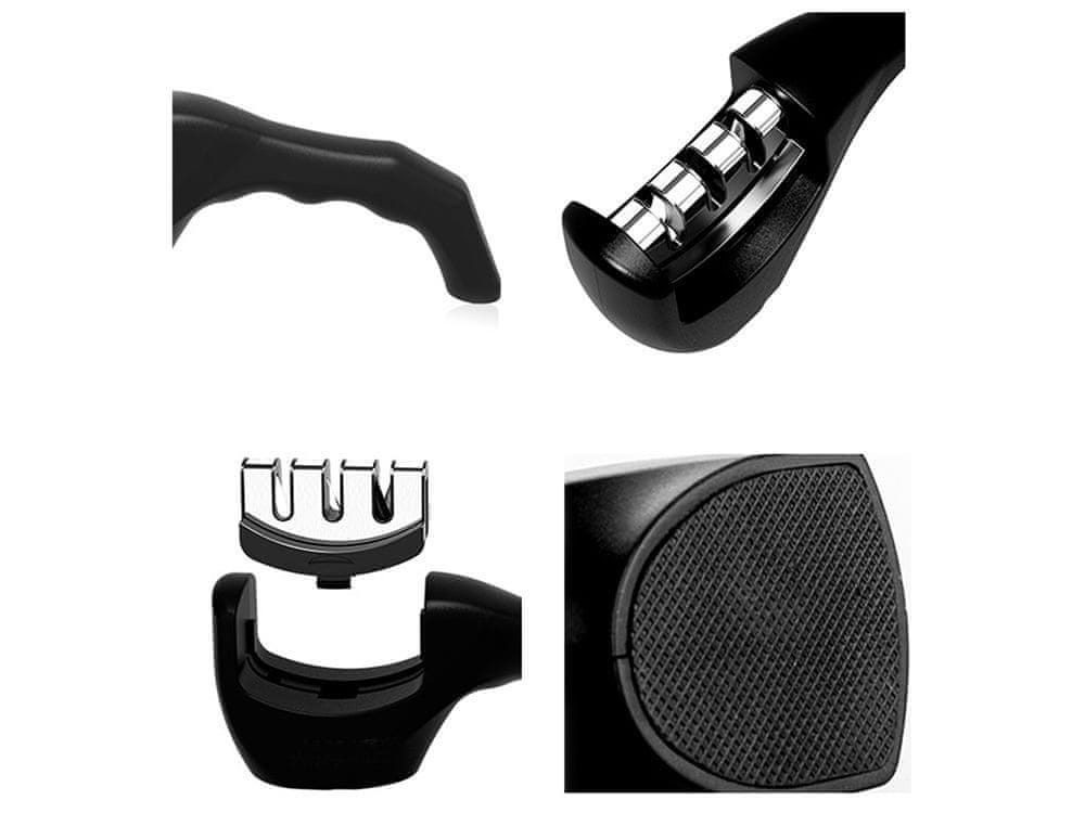 Tristopenjski brusilec nožev je rešitev, s katero se boste enkrat za vselej znebili problema neostrih nožev v vsaki kuhinji . Ročni brusilec nožev je enostaven za uporabo in zelo hitro in učinkovito izostri katero koli vrsto rezila. Brusilnik nožev 3v1 je kompakten pripomoček, ki ga lahko preprosto skrijete v kuhinjsko omarico ali predal, ko ga ne uporabljate – zavzame zelo malo prostora, po funkcionalnosti pa premaga številne zajetne in ogromne konkurenčne brusilnike.