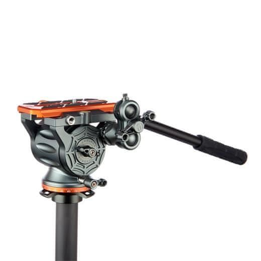 Poleg tega ima glava nastavljiv mehanizem za nagibanje, ki omogoča nemoteno premikanje. Ta mehanizem lahko nato upravljate neposredno ali s priloženo roko za pomikanje, ki jo lahko namestite na obe strani glave za desno in levo držanje. Glava ima torne kontrole za mehanizem pomikanja, naguban gumb za vpenjanje za boljši oprijem, vzvod in nagubano osnovo, ki se vrti za polnih 361° in jo lahko po potrebi zaklenete. Zaradi tega je glava idealna za vodoravno in navpično fotografiranje, kar boste še posebej cenili pri fotografiranju različnih stavb, neba ali velikih skupin ljudi.
