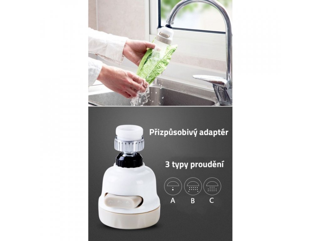 Ta adapter lahko pritrdite bodisi v kuhinji bodisi v kopalnici: v obeh prostorih bo imel enako funkcijo. Zahvaljujoč trem vrstam pretoka boste prihranili veliko vode in udobno in varčno boste pomivali posodo ali izpirali zelenjavo in sadje.