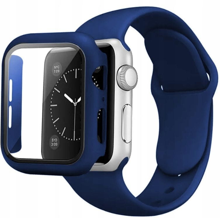 KOMPLET 3 V 1: PAŠČEK-OVITEK-KALJENO STEKLO ZA APPLE WATCH 4 5 6 SE 40 MM
